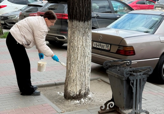 Муниципальные служащие побелили деревья в Пензе