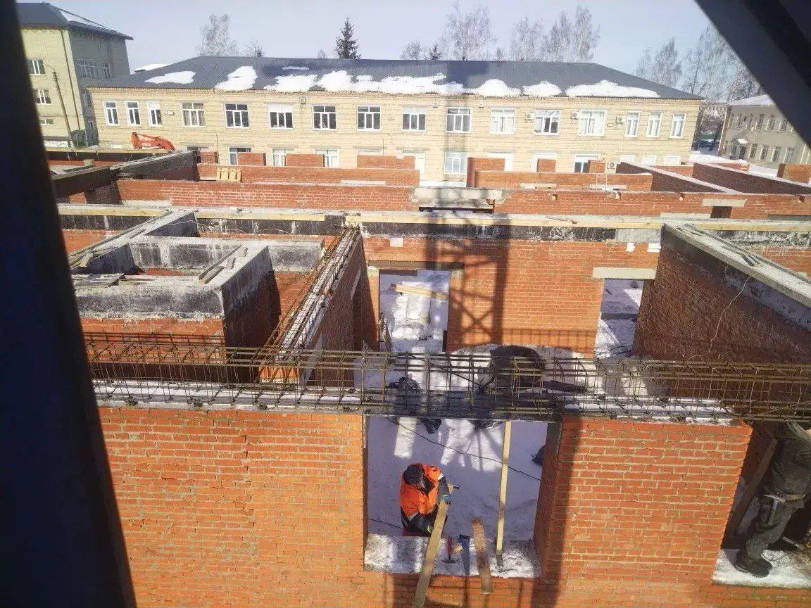 Строители в настоящий момент возводят первый этаж нового медицинского здания, где уже идёт монтаж внутренних перегородок. Одновременно с этим на территории больничного комплекса завершили установку современной котельной.