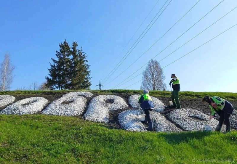 Сотрудники МБУ «Пензавтодор» провели побелку памятных и приветственных надписей на камнях. Работы ведутся в рамках подготовки к празднованию Дня Победы.